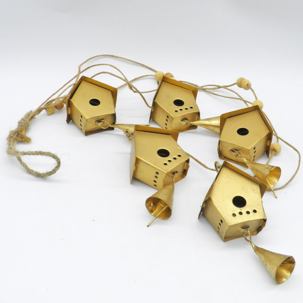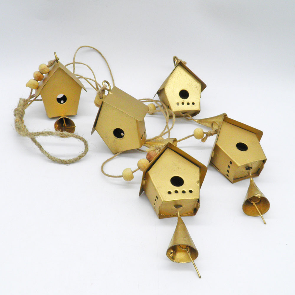 Κρεμαστό διακοσμητικό με χρυσά μεταλλικά σπιτάκια και κουδούνια.