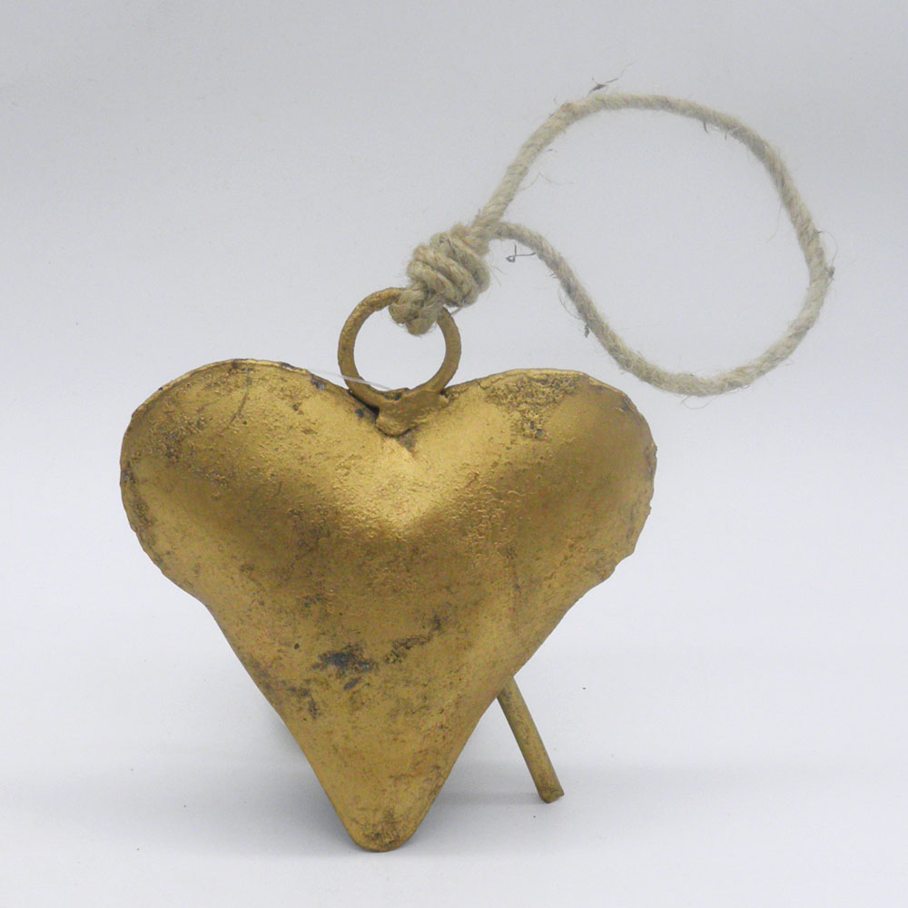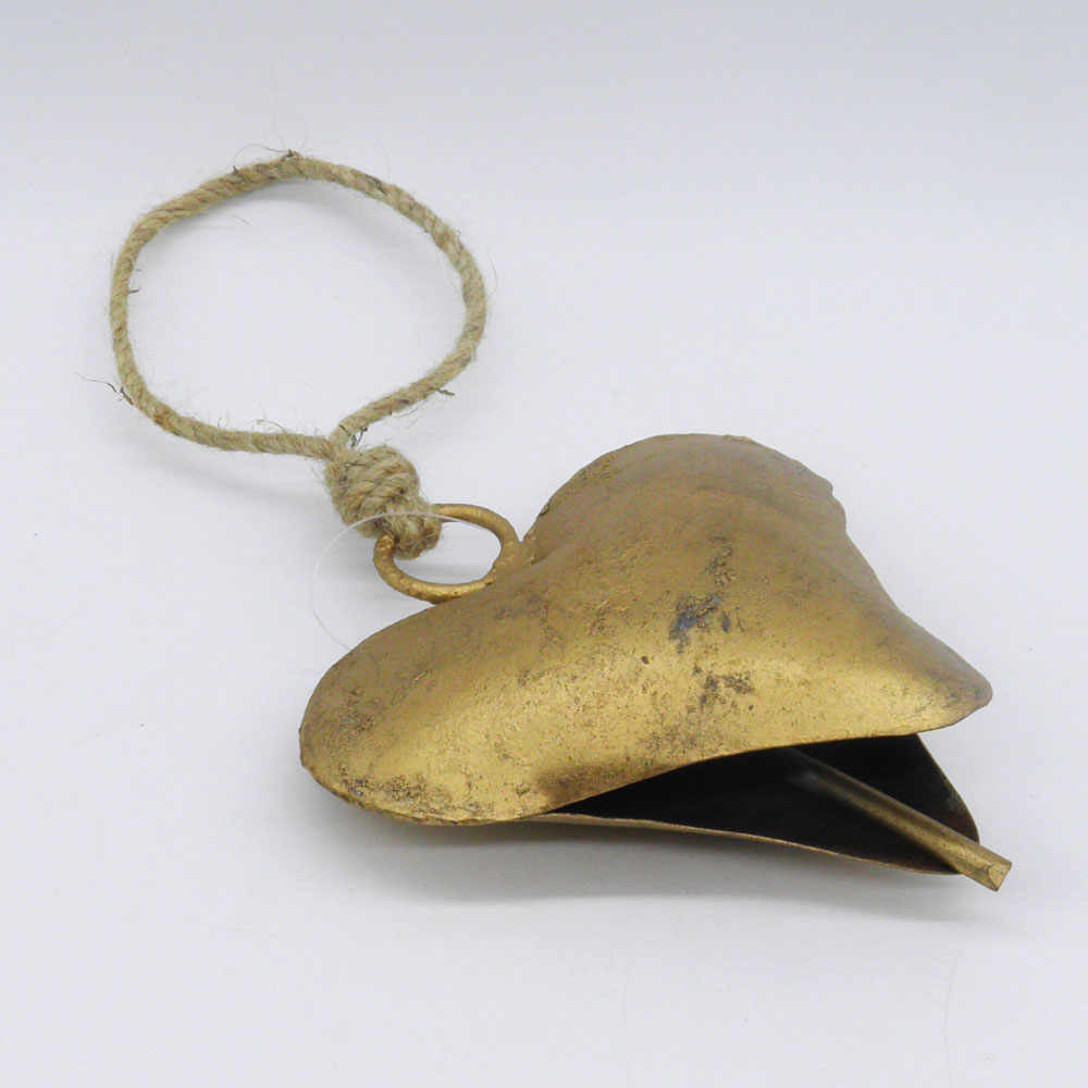 Χρυσό μεταλλικό κουδούνι 10cm σε σχήμα καρδιάς
